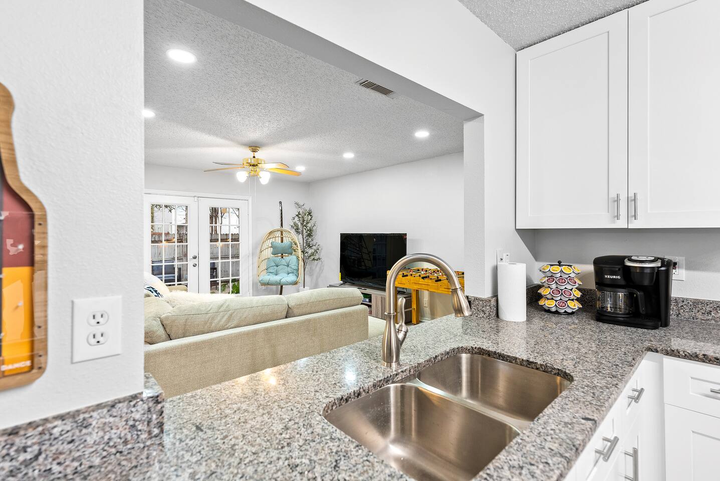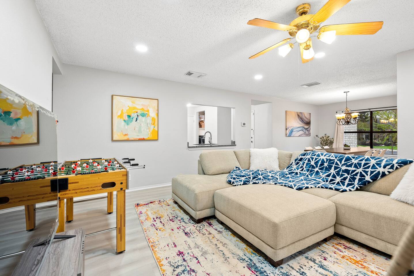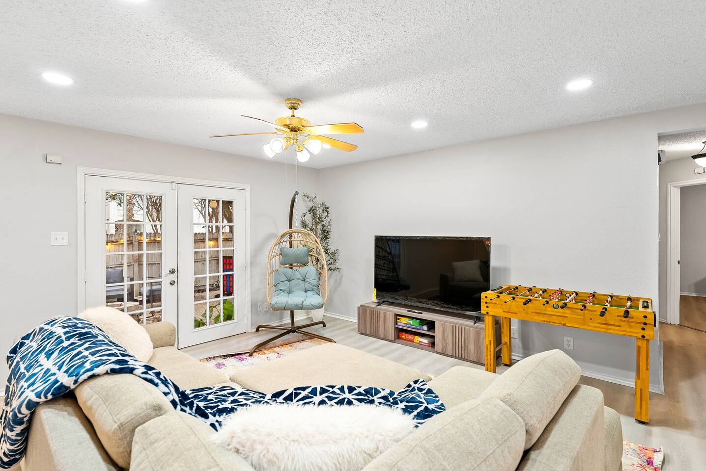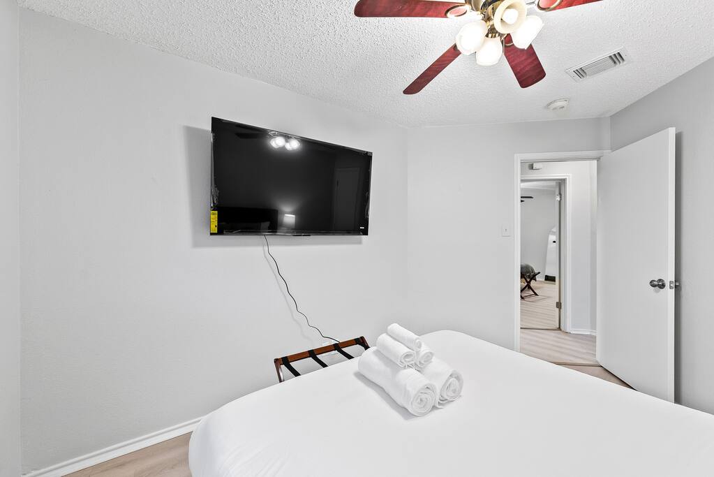 Welcome to Villa @ April! 3-bedroom villa with a patio and amenities. Perfect for a family gathering or short escape. Inside the villa, you will love the cozy rooms with comfy beds (1 king, 1 queen, 1 bunkbed twin over full). Enjoy your time with foosball, board games, and large TVs in every room. In the backyard, you have full access to the private pool, firepit, BBQ and life-size games. We love to accomodate families, and have pack & play and high chair ready. The pool is not heated.