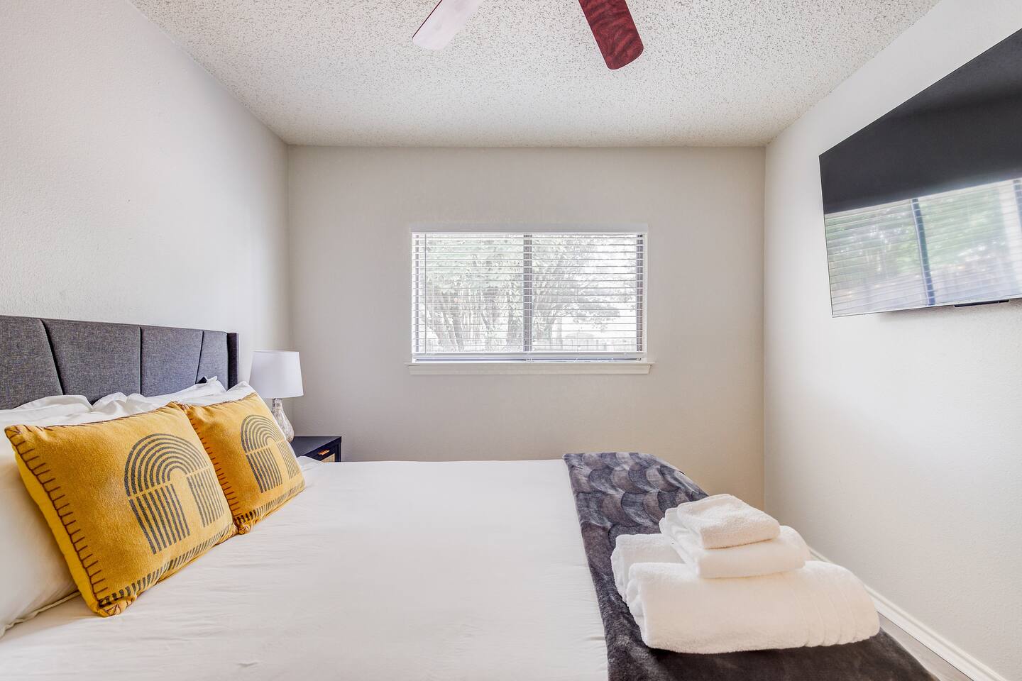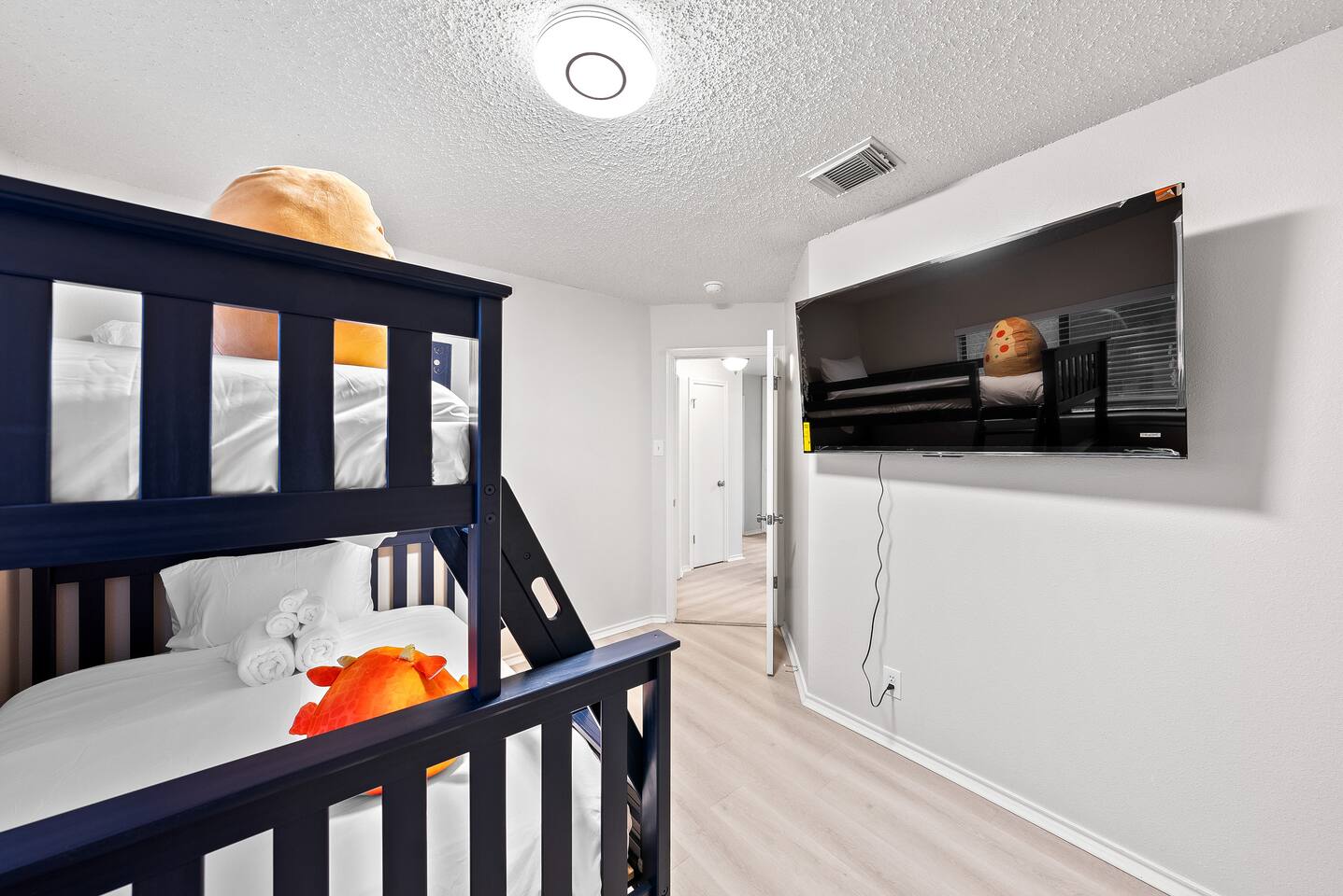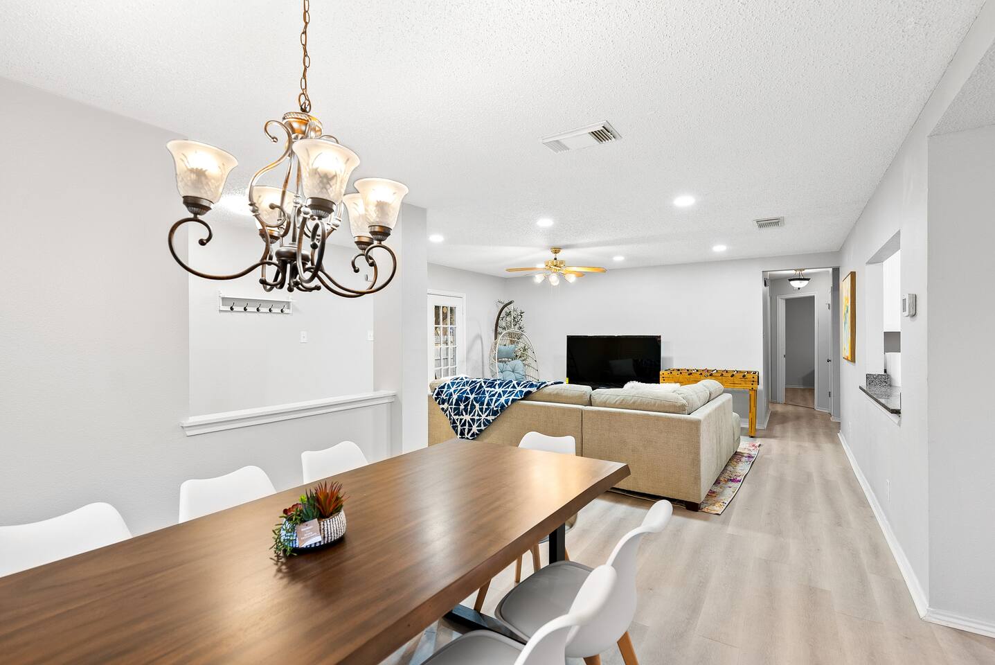 Welcome to Villa @ April! 3-bedroom villa with a patio and amenities. Perfect for a family gathering or short escape. Inside the villa, you will love the cozy rooms with comfy beds (1 king, 1 queen, 1 bunkbed twin over full). Enjoy your time with foosball, board games, and large TVs in every room. In the backyard, you have full access to the private pool, firepit, BBQ and life-size games. We love to accomodate families, and have pack & play and high chair ready. The pool is not heated.