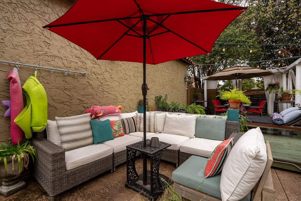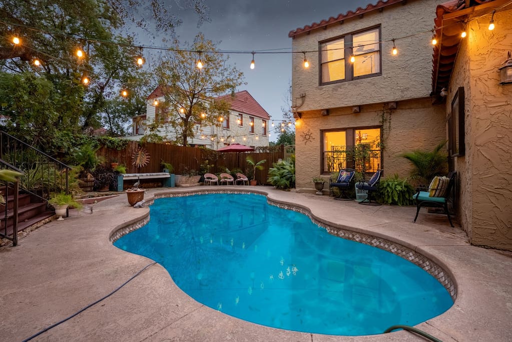 A 3500 sf stunning space with pool oasis. You will be thrilled by the architectural and historical showpiece. Great for families and pet friendly. Insta worthy. You have full access to the pool, hot tub, fire table and a lot of patio seatings. You will also enjoy an entertainment room with air hocky, foosball, and board games. Chef's kitchen, luxury Wolf / Monogram appliances. Rainfall shower head & tiled arch in bathrooms. For event or commercial photography / filming, please contact hosts.
